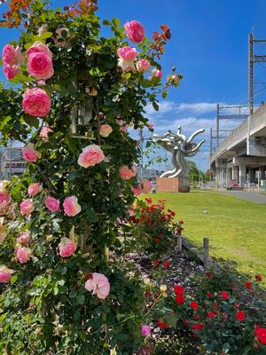与野本町駅前公園では、すごくきれいとはいえませんが、結構バラが咲いています。