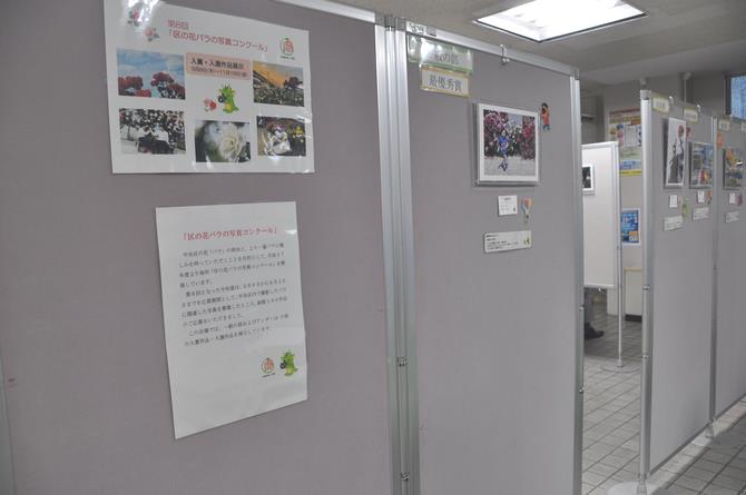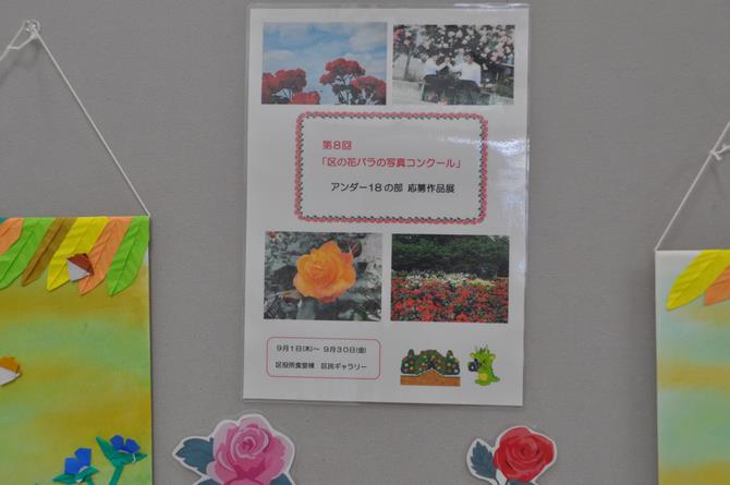 9月1日から1か月間、区役所食堂棟の区民ギャラリーで「第8回区の花バラの写真コンクール」アンダー18の部応募全21作品を展示しています。