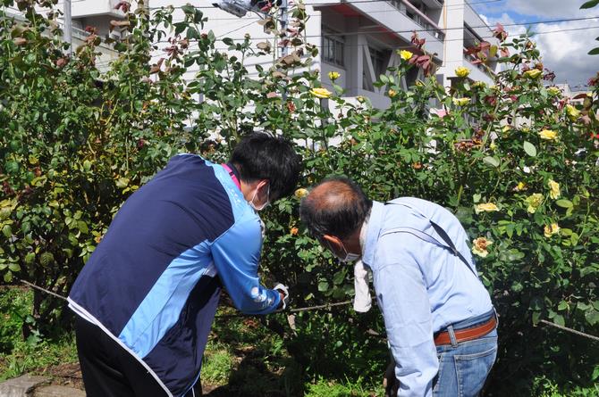 9月3日・4日に中央区バラサポーターによる与野公園のバラの剪定作業が行われました。