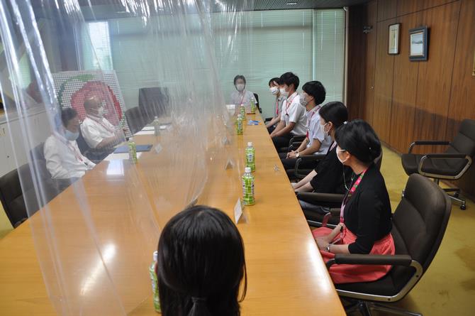 会議室でビニールシート越しの懇談となりましたが、「現在の仕事内容」「これまで持っていた市の仕事のイメージとのギャップ」「今後やってみたい仕事」「今はまっていることや趣味」などの話で予定時間を超えて和やかに行われました。