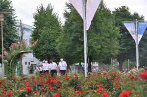 9月6日に近藤区長をはじめとする幹部職員と今年の4月にさいたま市役所に入庁し中央区役所に配属された新人職員が一緒に区役所周辺のバラの剪定を行いました。