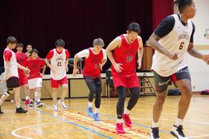 練習はウォーミングアップからだんだん激しくなり、最後は泉ヘッドコーチの指示で様々なフォーメーションの確認を行っていました。