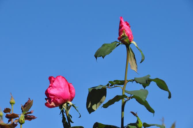 バラとバッタのツーショットも撮れました。秋ならではの風景です。