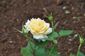 優しい黄色の可愛らしいバラ「はーとふるローズ」です。いつも会う清水さんによると、このバラは(公社)埼玉中央青年会議所が命名権を取得したバラで23日に15株植えたということです。