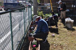 10月29日(土)に与野駅に近い旭町自治会と寿町自治会で花de植花夢事業による花植が行われました。