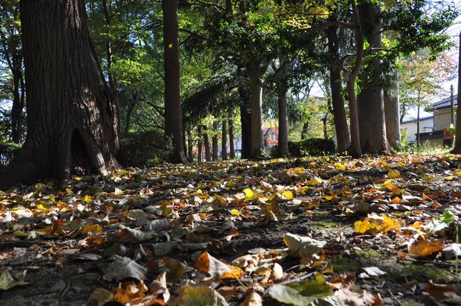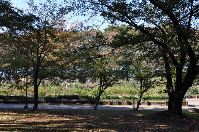 中央の広場付近では落ち葉がいい雰囲気を醸し出していました。木についている葉はまだ緑のものが多いので、与野公園ではこれからしばらくの間バラと紅葉、落葉が楽しめます。
