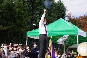 さらに近藤区長は、全校児童で行う最終種目「大玉ころがし」のスターターの大役を務めさせていただきました。
