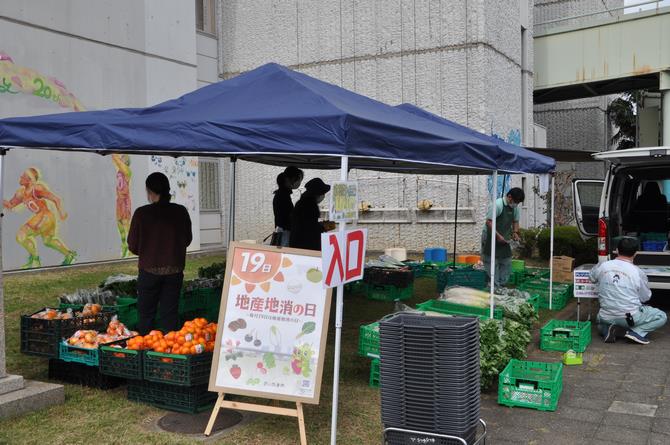11月7日(月)に区役所東側バスケ壁画の前で市内農産物のプチマルシェが行われました。