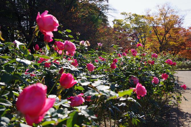 先週17日に動画の撮影で与野公園を訪れた際にまだバラが綺麗に咲いていたので、改めてバラと紅葉、落ち葉の写真を撮りに行ってきました。