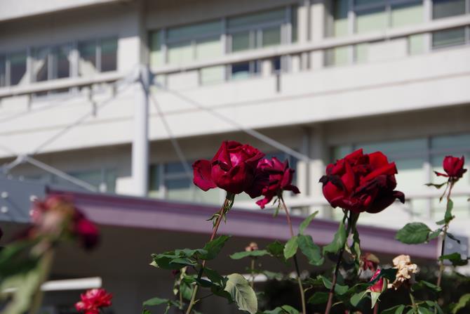 中央区役所内にはいろいろな種類のバラを植えています。