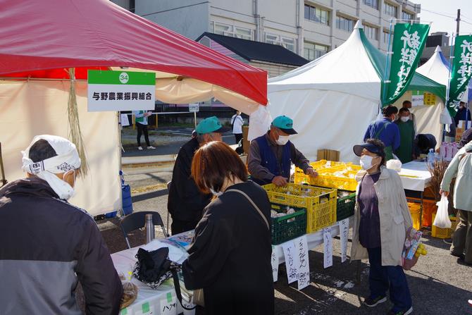 体育館前に毎年出店し人気だったさいたま市の友好都市である南魚沼市や南会津町、鴨川市のブースは、今年は1日開催でブースを減らしたこともあり出店がありませんでしたが、地元農産物などを販売した与野農業振興組合や与野グリーンサークル、JAさいたま与野支店などのブースは好評で早い時間に売り切れていました。