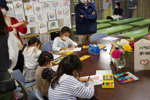 バラの折り紙講習や塗り絵が人気でたくさんの人が体験していました。