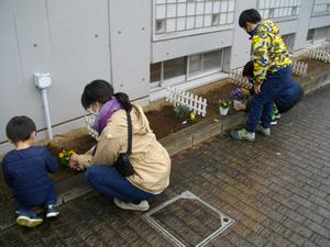 どちらも児童センター利用の親子が参加し、花を植えていました。