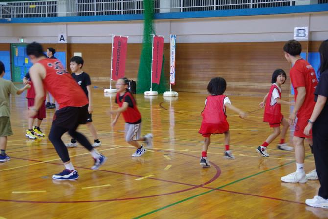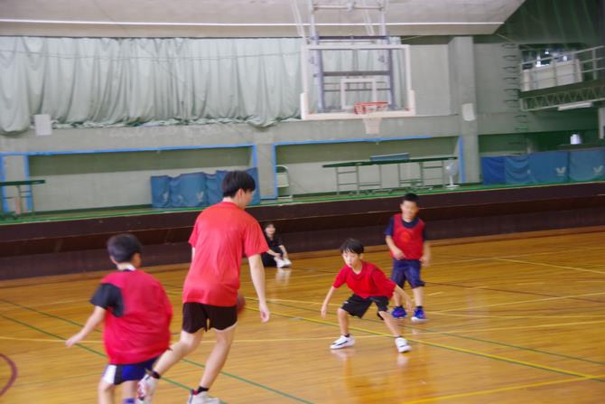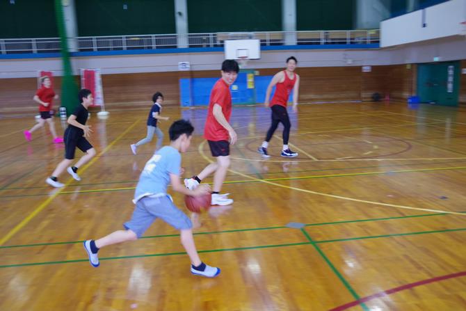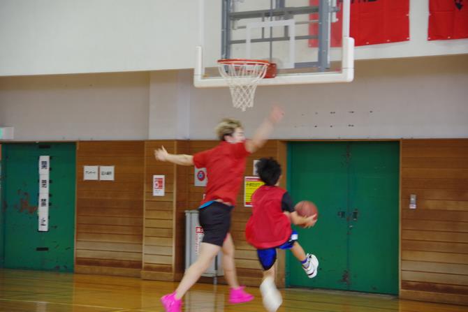 午前、午後ともバスケ経験者と未経験者に分かれました。経験者には赤いビブスを着てもらいました。