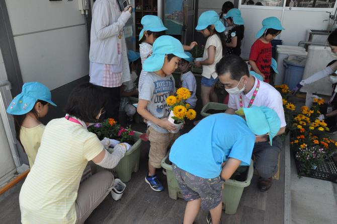 7月11日(火)に鈴谷保育園で花de植花夢による花植えを行いました。