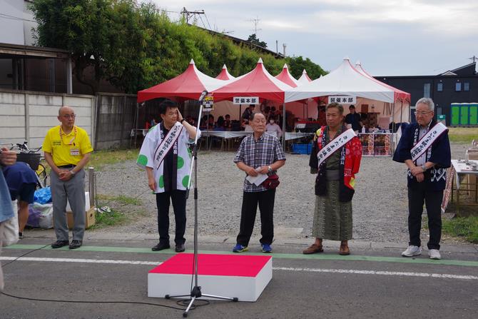 まず、今年の当番町会である下町の加藤福寿会長からの開催挨拶の後、さいたま市観光国際協会名誉会長の清水勇人市長からは、「さいたま市の夏まつりは、この与野夏祭りからスタートします。4年ぶりのまつりを思いっきり楽しんでください」と挨拶がありました。