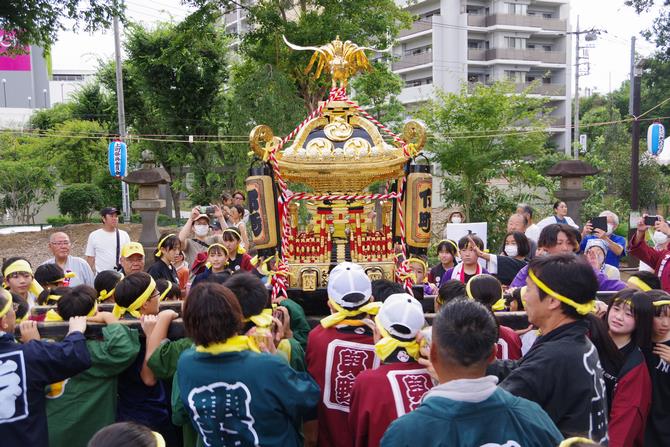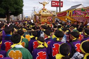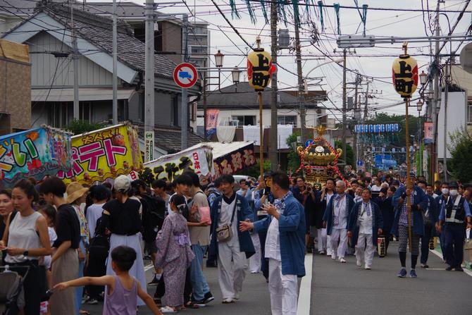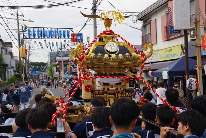 15日は四町会のみこしが本町通りの一番北にある上町氷川神社で一堂に会します。16日は本町通りを中心にそれぞれの地区を練り歩きます。
