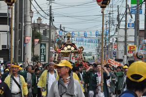 四町会のみこしが上町氷川神社を目指して本町通りを進みます。