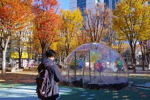 けやきひろばは、先日イルミネーションを案内しましたが、日中はけやきの紅葉がとても綺麗でした。スーパーアリーナの大型ビジョンには、ちょうど「さいたま謎旅-まちあるき-」の案内が流れていました。