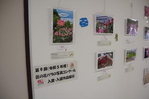 区役所2階の廊下の壁に展示してある、区の花バラの写真コンクールの入賞・入選作品を第8回(令和4年度)のものから第9回(令和5年度)のものに入れ替えました。