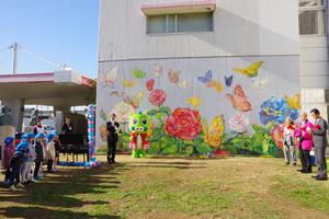 12月8日(金)に、区役所東側壁面で制作していた区制施行20周年を記念する新たな壁面アートの完成披露会が開かれました。