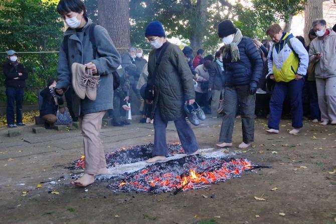 来年の中央区民の幸せを祈って北里区長も「火渡り」をしました。