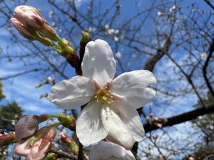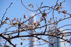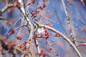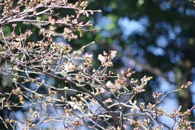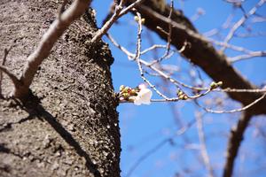 今年は、弁天池の桜が一番早く咲き始めています。東側トイレ付近でも数輪咲いています。
