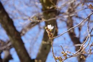 上落合公園では、東側入り口付近の1本と公園中央の桜に1輪ずつ咲いていました。