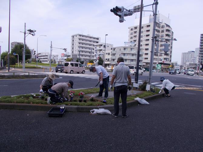 私たちが到着すると、すでにプランターの古い花は抜かれていて、公園内の除草や掃除をしていました。