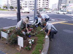 6月6日(木)に北里区長をはじめとする幹部職員が区役所の中央通り沿いにあるバラの花壇の剪定を行いました。