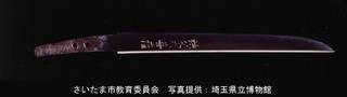 This piece was forged near the end of the Kamakura period (1185-1333) by Osafune Kagemitsu. Measuring 28.3 cm long, it was once used by the military leader Uesugi Kenshin. The phrase “Chichibu Daibosatsu” is engraved into the blade. |