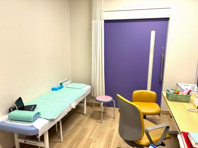 診察室にはお子さんが興味を持てるようなおもちゃやDVDなど用意しております。(写真:右上)