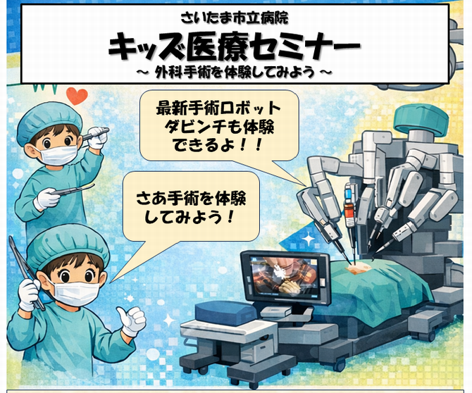 さいたま市立病院では、子どもたちが医療や医療の仕事に興味・関心を持ち、将来の地域医療の担い手を志すきっかけとなることを目的にセミナーを開催します。