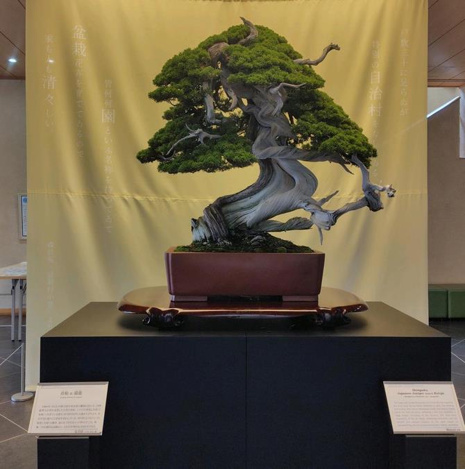 せっかくなので入館して展示を見てきました。大きく迫力のある盆栽の数々に圧倒されます。盆栽園の歴史や系譜も展示の中で触れられていて、樹齢500年とかの盆栽には魂が感じられました。何代もの職人さんが手をかけて作り上げた、まさに芸術ですね。