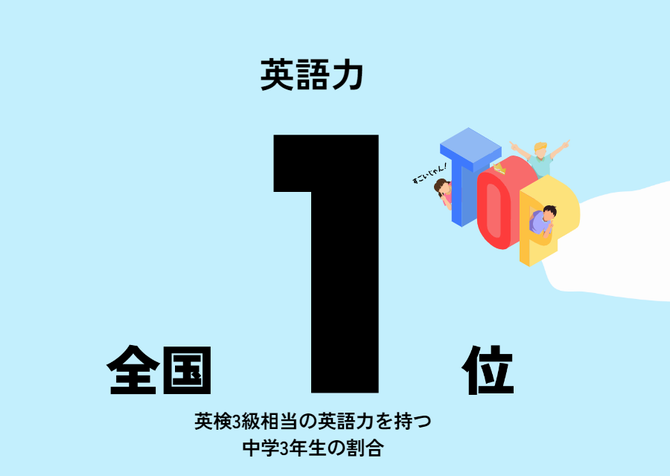 英検3級相当の英語力を持つ中学3年生の割合が6回連続全国トップ!