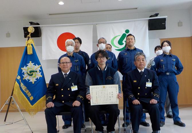令和7年5月2日(金)岩槻消防署において、令和7年3月20日(木)に区内で発生した救急事案の協力者に対し、消防署長表彰を実施しました。