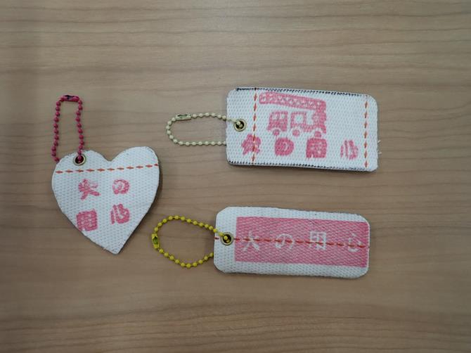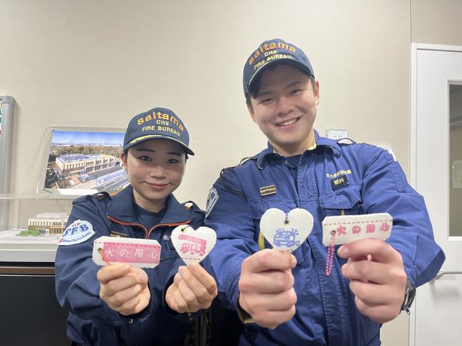 岩槻消防署消防2課では、穴が開くなどして使用できなくなった消防用ホースを再利用し、消防ストラップを作成しました。