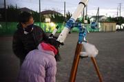 出前天体観望会は、小・中学校を対象に月や惑星などの観察を行っています。児童生徒が本物に触れる機会を大切にしています。