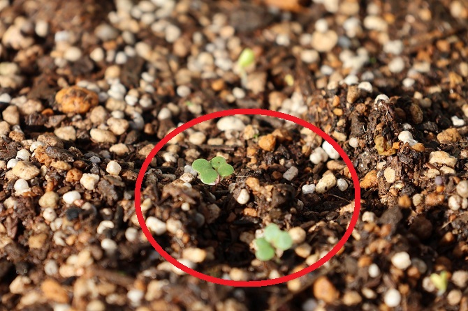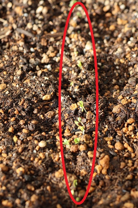 12月1日(月曜日)、お水を上げていると、ネット越しに緑のポツポツが見えました。