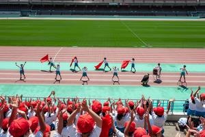 ・運動会の振り返りを言えたことや広いスタジアムの本格的なレーンで思い切り走れたことがうれしかったです。(閉会式の児童代表)
