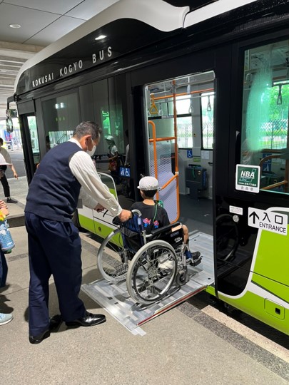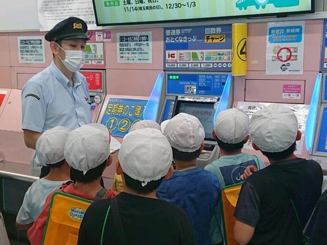 4年生は、鉄道とバスという2つの公共交通機関を利用してバリアフリー教室を行います。 車いすや白杖・アイマスクなどを使い、身体の不自由な方や高齢者が公共交通機関を利用する様子を疑似体験することは、思いやりの気持ちや「自分にできること」を考える貴重な機会となっています。また、実際の駅やバスにおけるバリアフリーの取組、駅員さんや運転手さんの対応について知ることで、仕事に対する理解も深まりました。