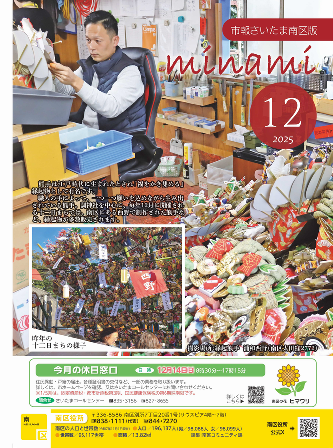 「市報さいたま」の裏表紙から5ページを、「南区版」として、区内の情報をお知らせしています。ぜひ、ご覧ください。