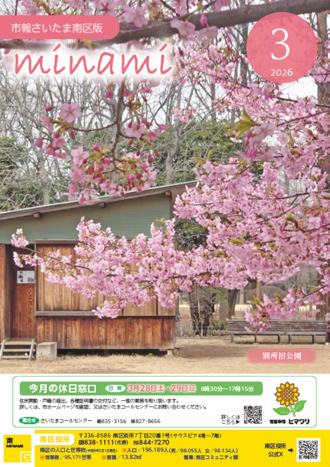 「市報さいたま」の裏表紙から5ページを、「南区版」として、区内の情報をお知らせしています。ぜひ、ご覧ください。