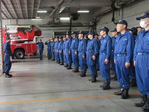 6月9日(日曜日)南消防署、六辻公民館にて風水害に向けたボート組立て訓練、資器材の取扱い訓練を実施しました。また、安全管理についての講話を行いました。