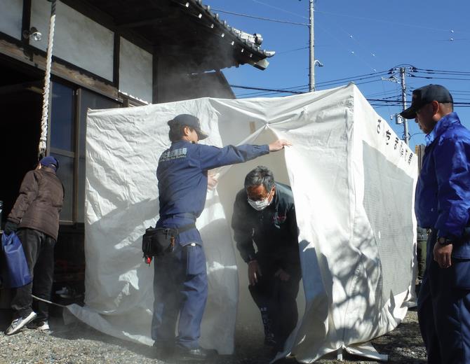 文化財防火デーの1月26日、西区大字宝来地内の「福寿庵百観音」で防火・防災訓練をおこないました。