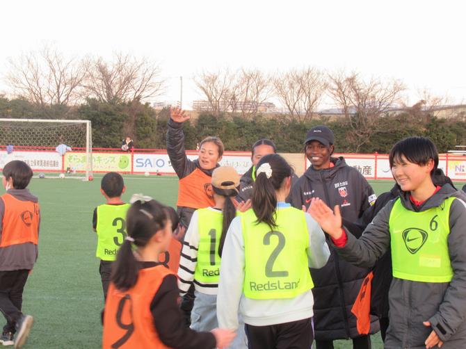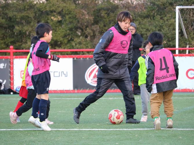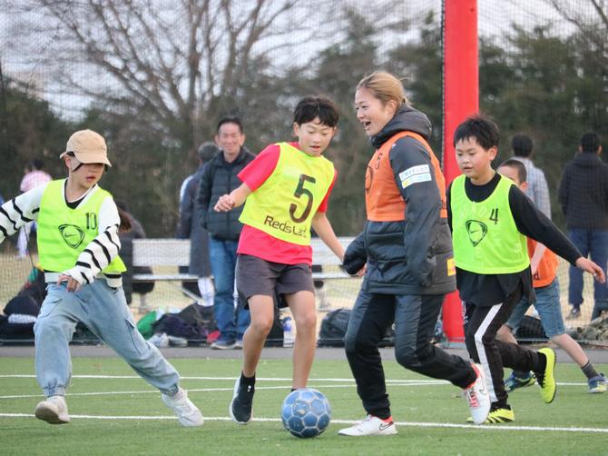 当日はレッズレディースの選手たちも駆けつけ、賑やかでたくさんの笑顔があふれる教室となりました。