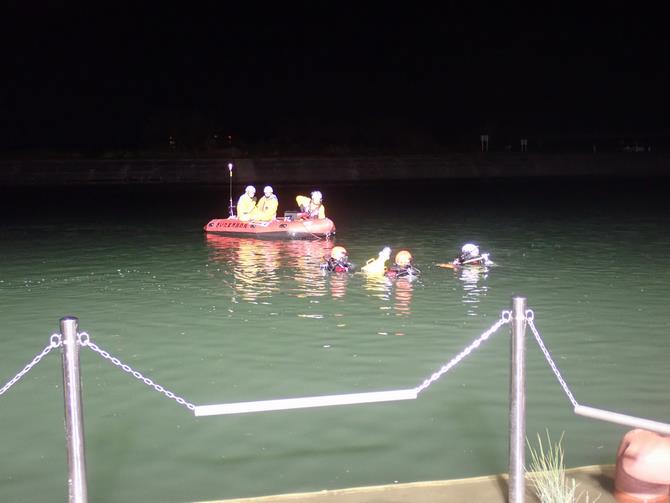 今回は見沼消防署が運用する電源照明車と連携し、日没後に発生した水難救助事故を想定した夜間潜水活動を行う上で、