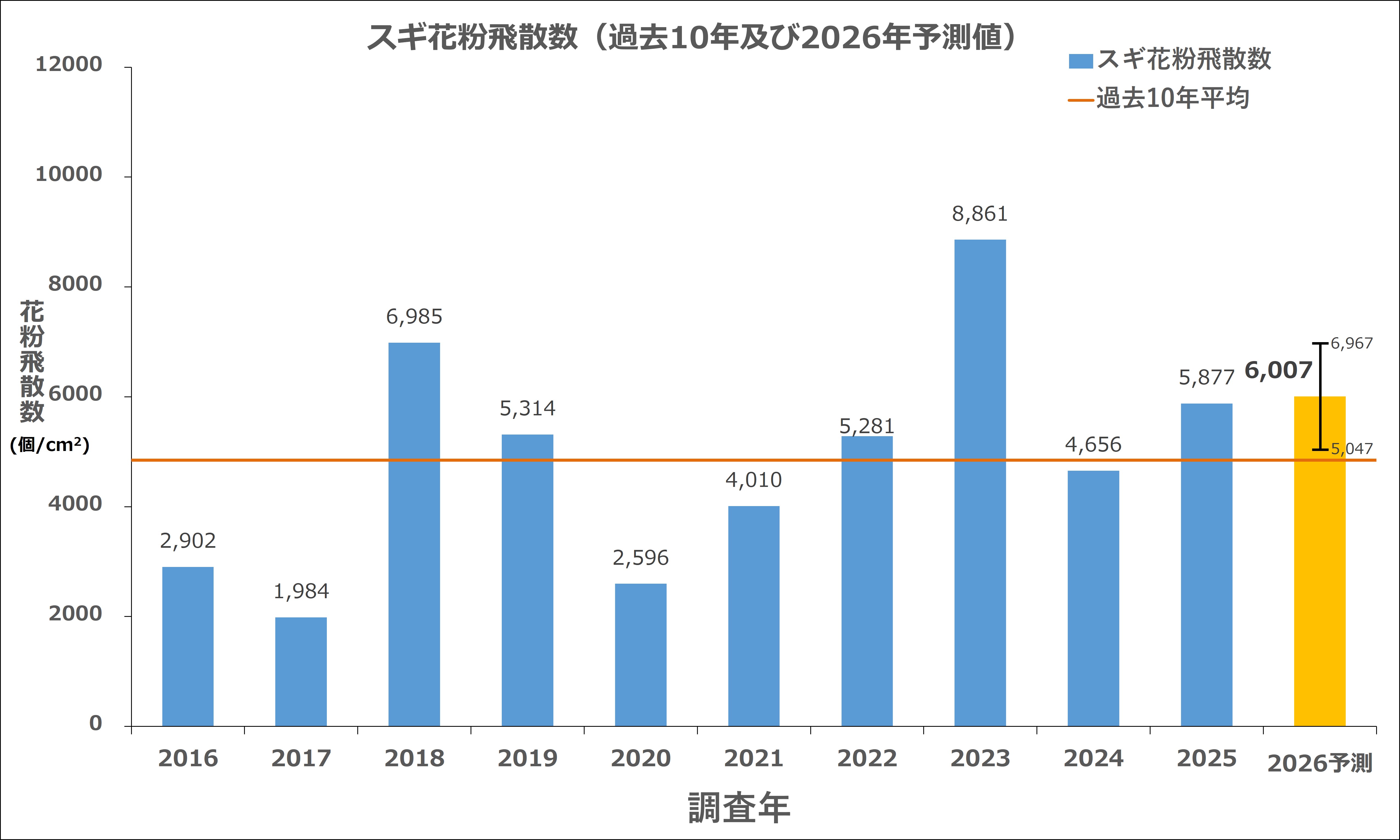 スギ花粉飛散数(過去10年及び2026年予測値)(画像形式(JPG) 676キロバイト)