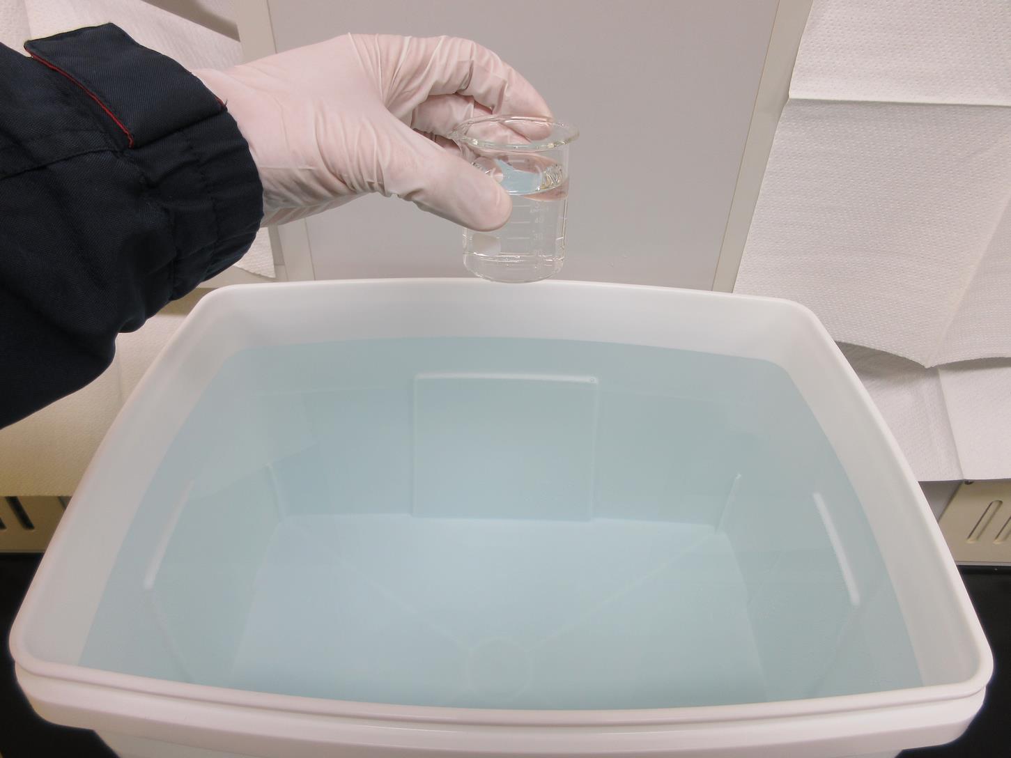 また、付いてしまった銅石けんは、10%程度のアンモニア水(市販のアルカリ洗剤でもよいです)を少量たらし、スポンジ等でよくこすり、水で流すことで洗い落とすことができます。