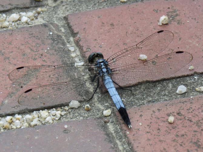 センター敷地内でシオカラトンボのオスが飛んでいるのを発見しました。